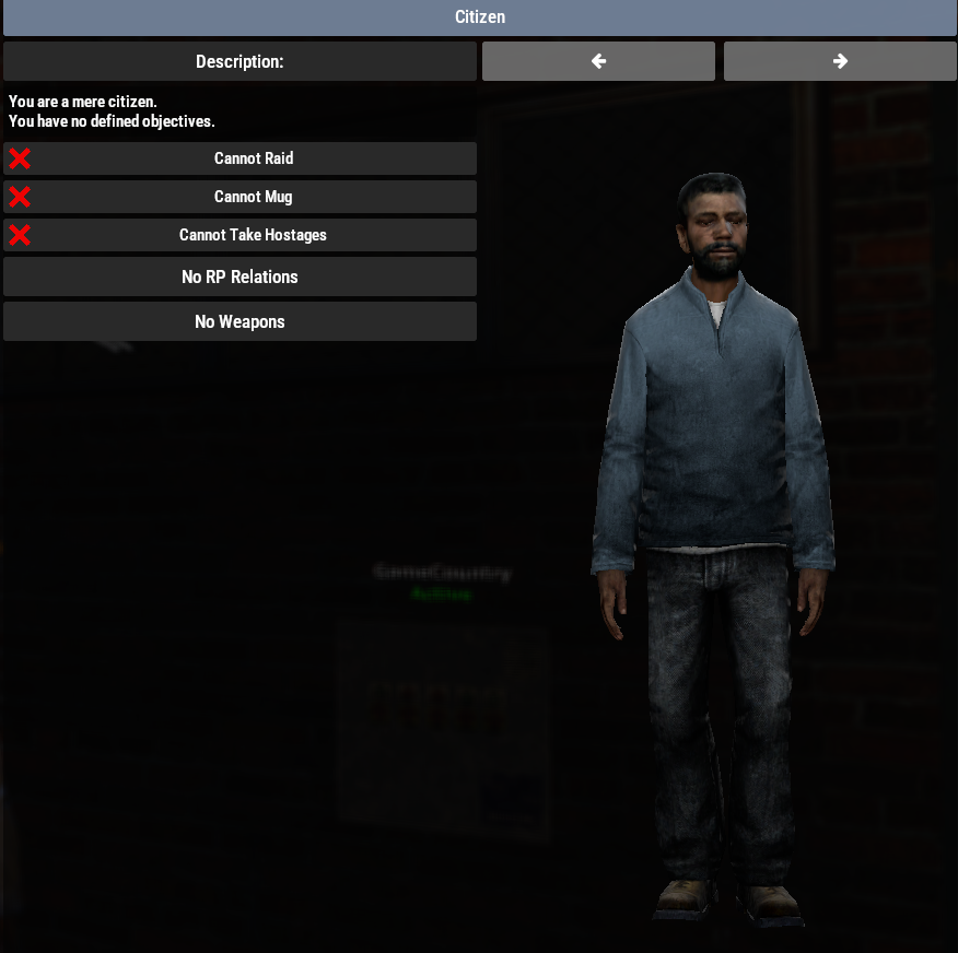 This is the default starter class that everyone who joins into the server will be. A Citizen cannot