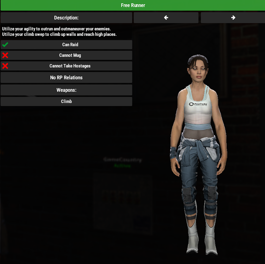 , with this SWEP they are capable of climbing buildings that you normally would not be able to and they are naturally faster than other classes. They also take reduced fall damage.